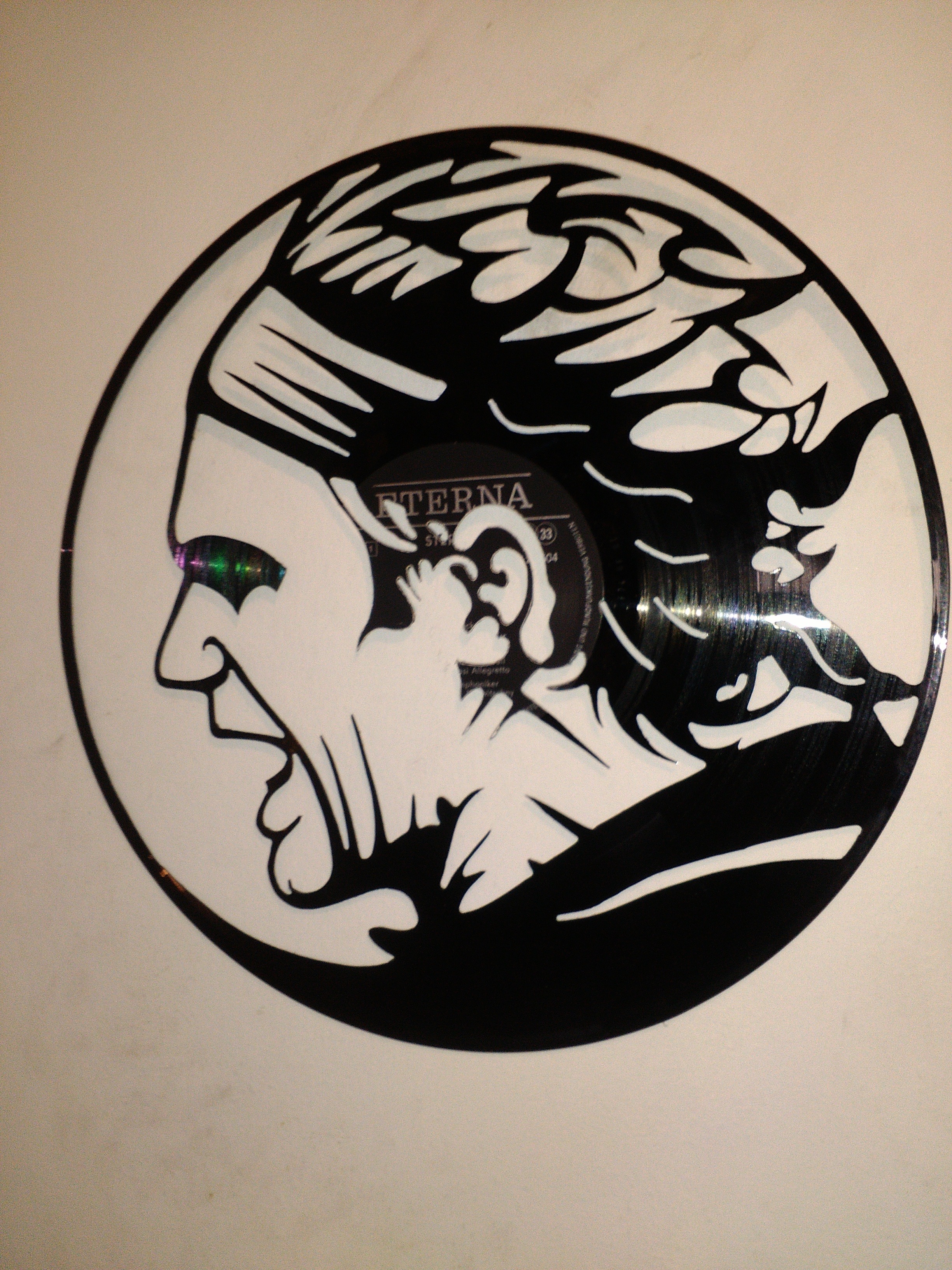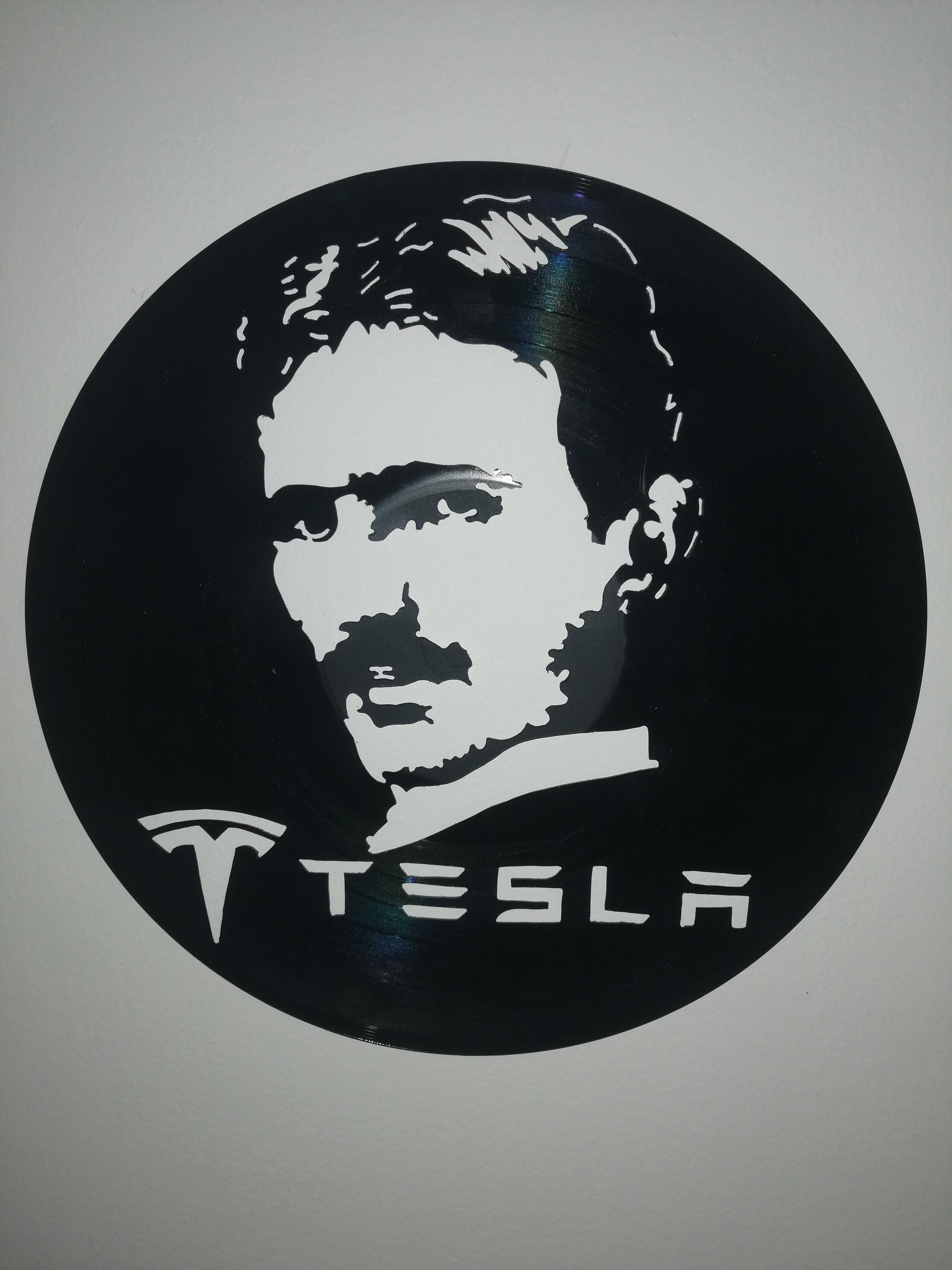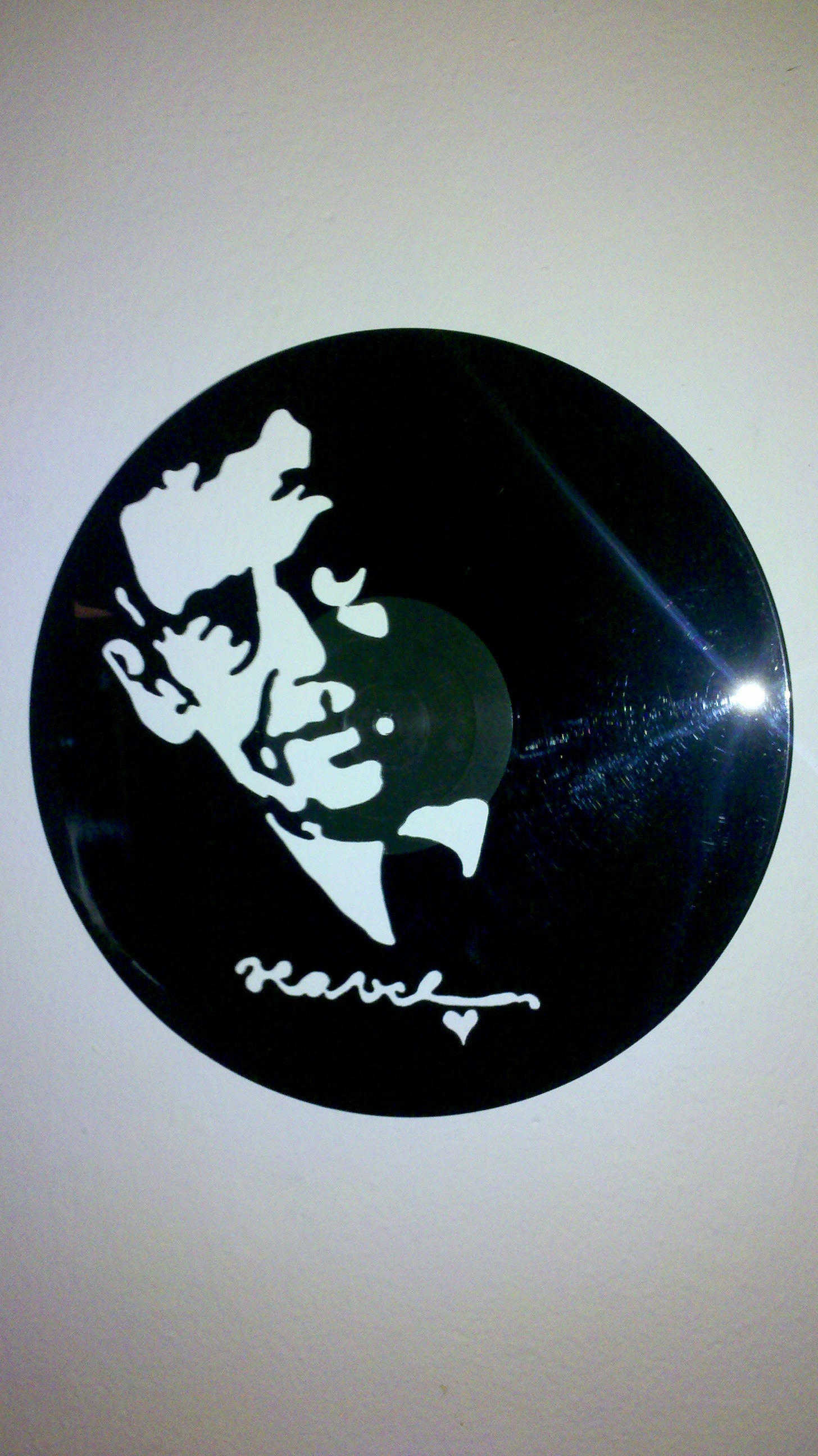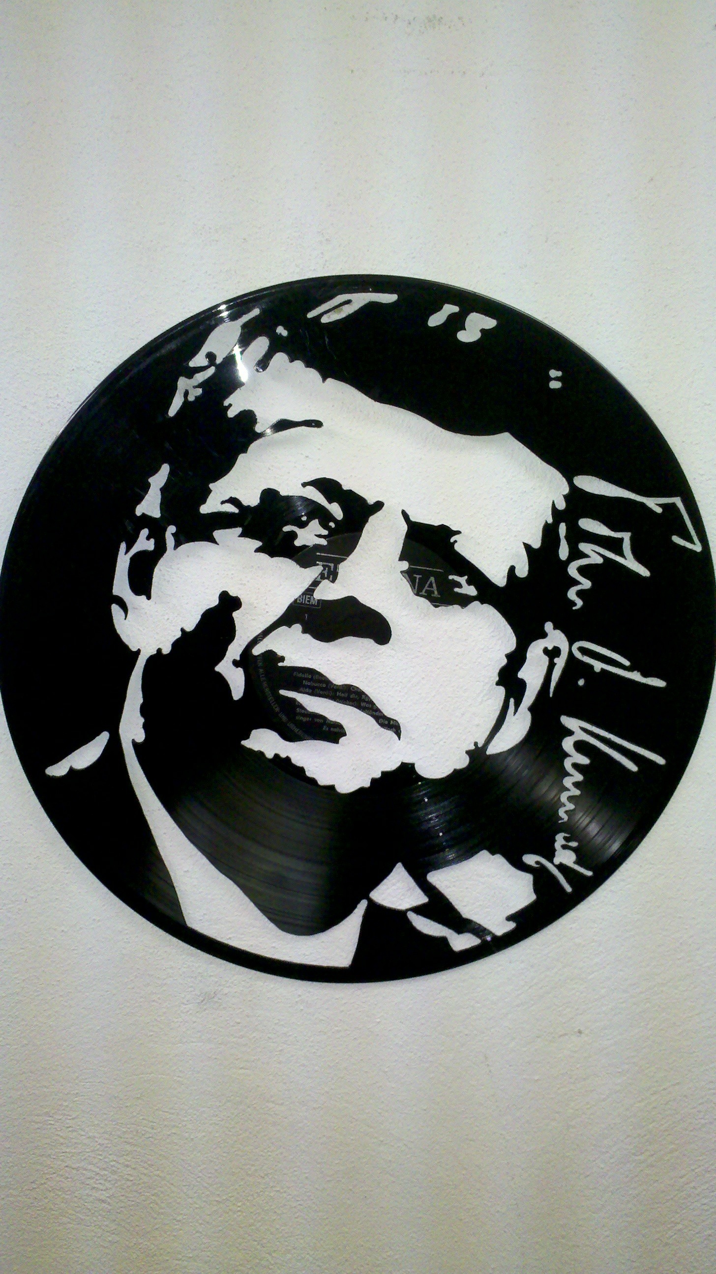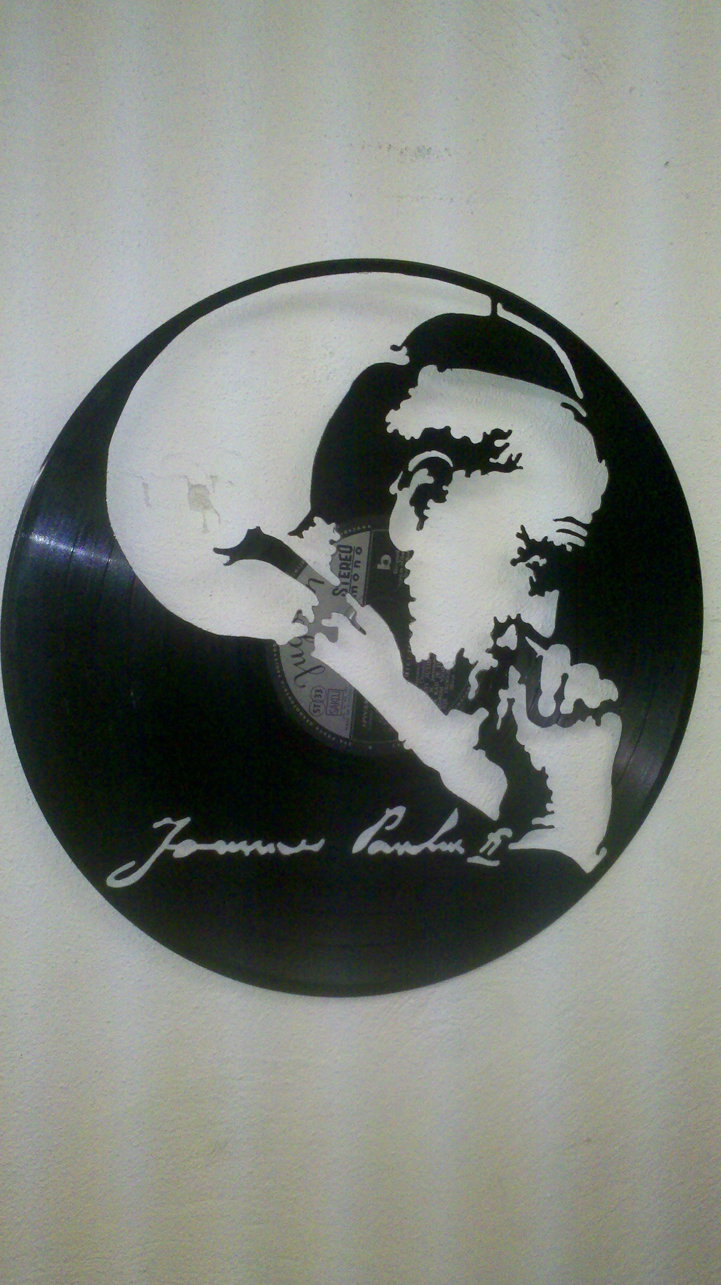 Zajímavější je ale instalace, kdy se deska pověsí na silon do prostoru před zeď a nasvítí se zepředu zdrojem ostrého světla. Najednou jsou objekty dva. Samotná deska v prostoru a její zvětšená projekce na zdi za ní.